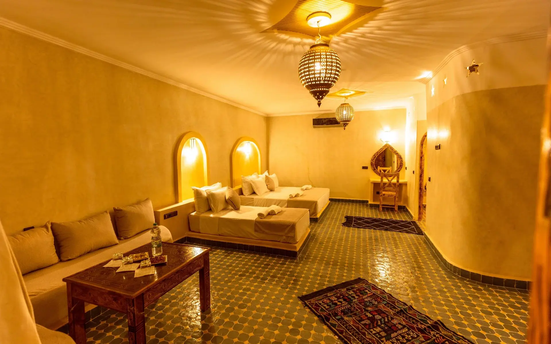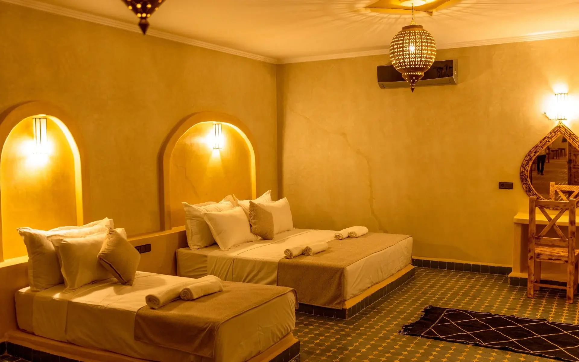 Enjoy a comfortable and elegant stay in our Luxury Double Room, perfect for couples or friends. This beautifully designed space offers a peaceful atmosphere, a comfortable double bed, and modern amenities to ensure a relaxing experience. Combining style and comfort, it is ideal for those seeking a refined stay in the heart of the Sahara desert.