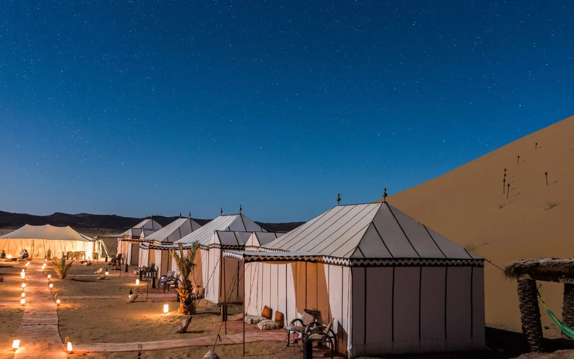 Sleep in comfortable tents in the heart of the Sahara.