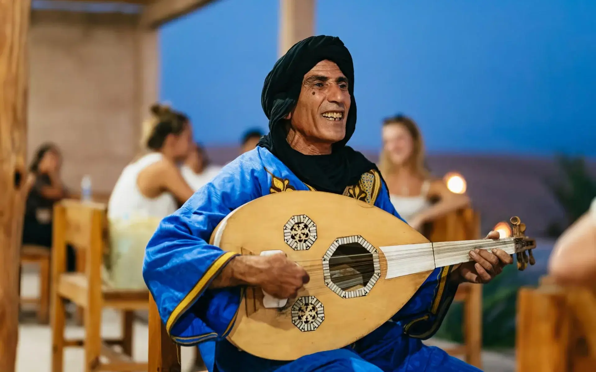 Live traditional Berber music and campfire atmosphere.