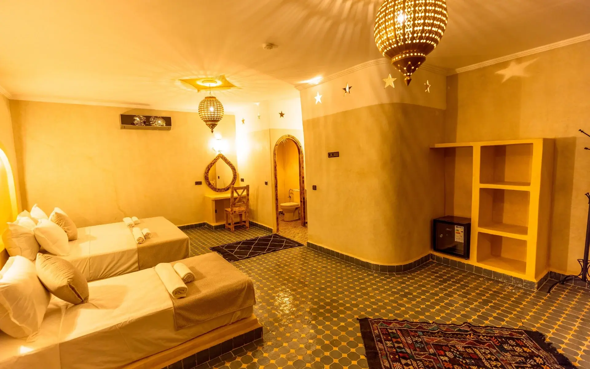 Enjoy a comfortable and elegant stay in our Luxury Double Room, perfect for couples or friends. This beautifully designed space offers a peaceful atmosphere, a comfortable double bed, and modern amenities to ensure a relaxing experience. Combining style and comfort, it is ideal for those seeking a refined stay in the heart of the Sahara desert.